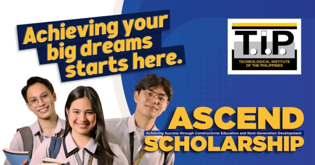 The Technological Institute of the Philippines (T.I.P.) is now accepting applications for the Achieving Success through Constructivist Education and Next-Generation Development (ASCEND) Scholarship for qualified incoming college freshmen.