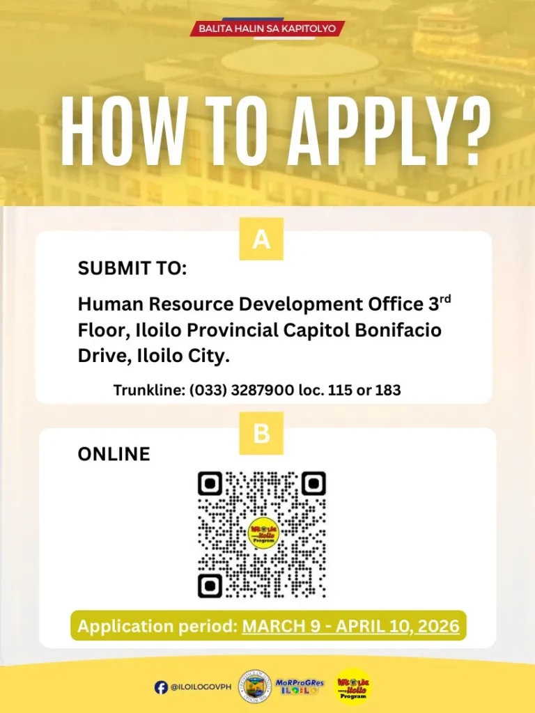 - Walk-in application at the Human Resource Development Office, 3rd Floor, Iloilo Provincial Capitol