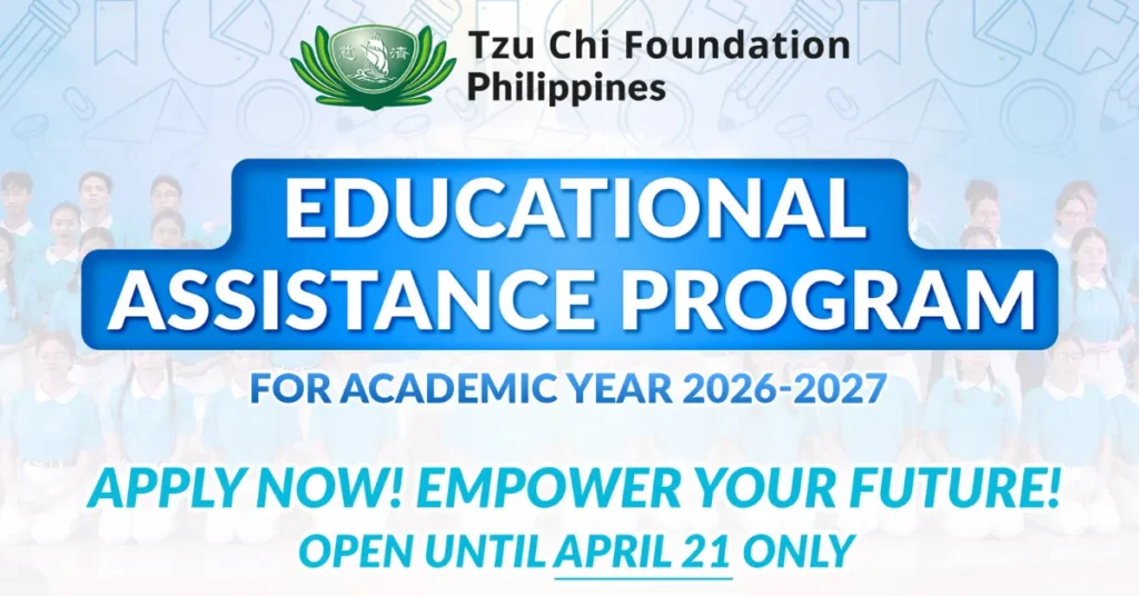 The Tzu Chi Foundation Philippines has officially opened applications for its Educational Assistance Program for Academic Year 2026–2027.